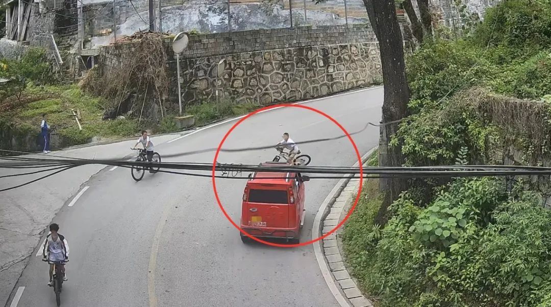 在城市街道、公路骑行时往往存在着交通安全隐患3名学生组团追逐竞速其中1名摔倒被后车碾压脚掌